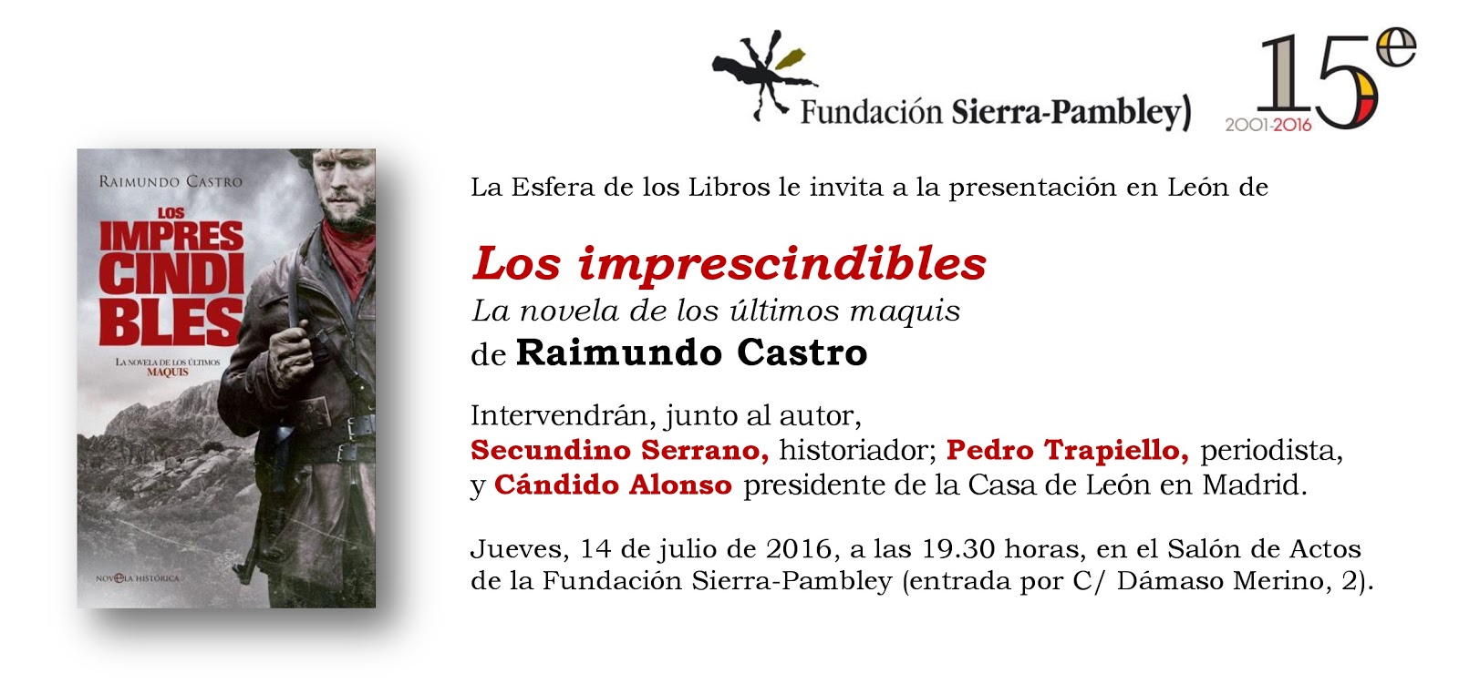 El próximo jueves, 14 de julio, a las 19,30 horas, en el Salón de Actos de la Fundación Sierra-Pambley (entrada por c/Dámaso Merino, 2) y organizada por La Esfera de los Libros, tendrá lugar la presentación de
